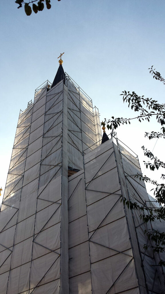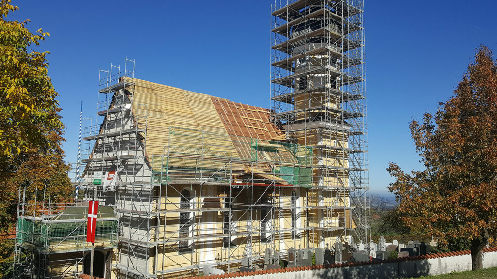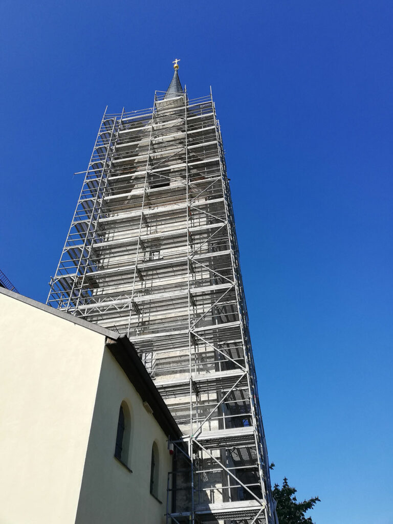Im Innen- wie im Außenbereich stellen wir mit unseren Gerüsten eine solide und sichere Grundlage für die Ausführung aller geplanten Arbeiten an Kirchtürmen, Dächern, Fassaden, Wandmalereien und Kirchenfenstern. Bei Bedarf sogar im laufendem Kirchenbetrieb!